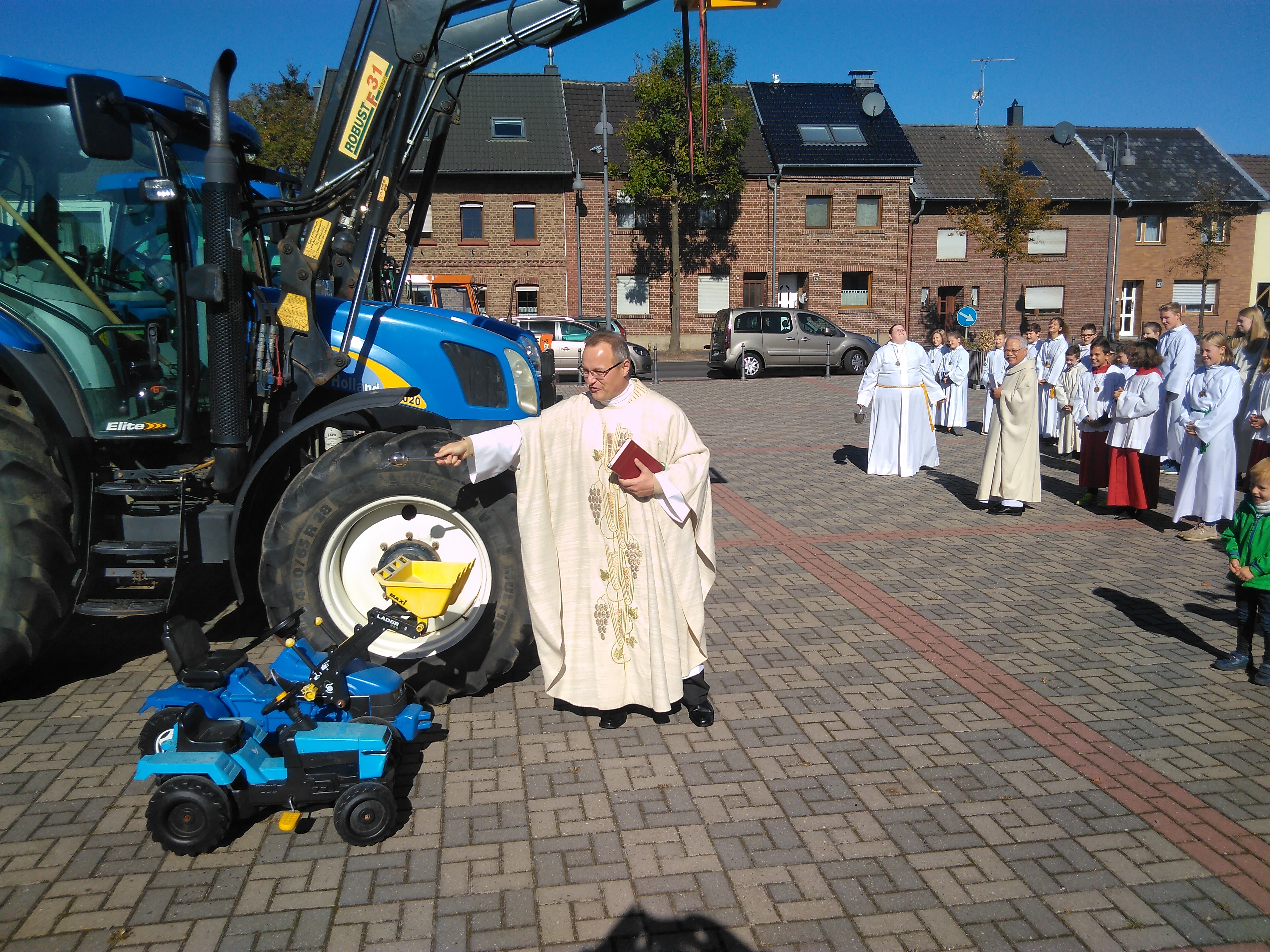 Vor dem Hof wurden die großen und kleinen Traktoren gesegnet 🙂
